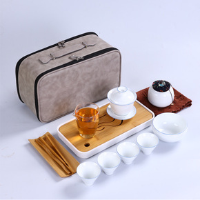 户外旅行便携包功夫茶具玻璃茶杯日式茶壶套装一壶四杯...
