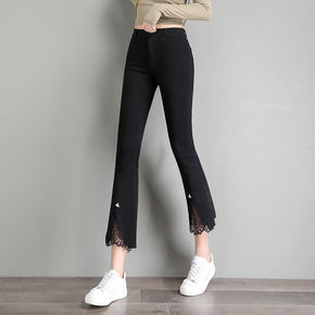 微喇裤女九分裤2022新款高腰显瘦弹力裤子蕾丝拼接...