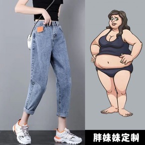 胖妹妹九分牛仔裤女2022新款大码高腰宽松显瘦粗腿...