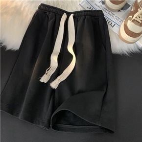 夏季手工编织抽绳短裤女学生ins潮流宽松休闲直筒纯...
