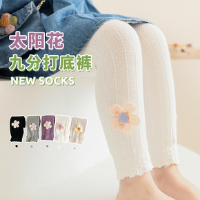 女童打底裤2022春夏新款儿童九分裤韩版花边蝴蝶结...