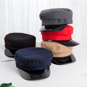 秋冬毛呢军帽子女欧美风海军贝雷帽百搭冬季字母鸭舌帽...
