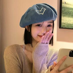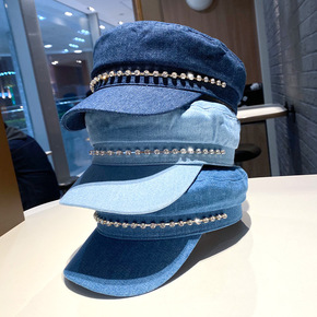 小众水洗大版蓝色牛仔贝雷帽日系文艺云朵帽春夏新款八...