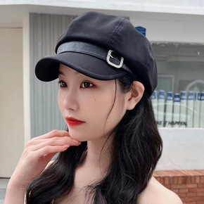 韩版帽子女秋冬时尚百搭平顶鸭舌帽英伦复古海军帽黑色...