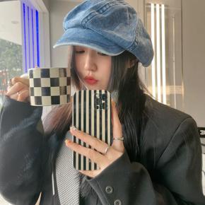 四季都可戴的日系洋气格子贝雷帽子女软妹可爱画家帽八...