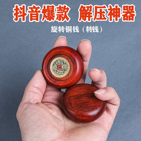 旋转铜钱手把件紫檀 红木文玩工艺品礼物转钱抖音解压...