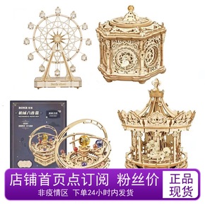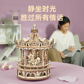 若客机械八音盒旋转木马音乐盒木拼装生日手工礼物送女...