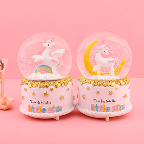 创意家居独角兽水晶球音乐盒飘雪花灯 树脂工艺品 女...