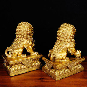 铜狮子摆件一对北京铜狮家居风水宫门狮装饰摆件...