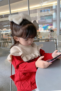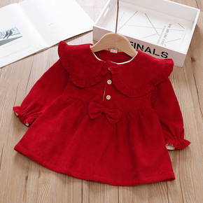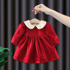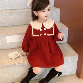 女童春秋季2022新款红色洋气韩系可爱娃娃领宝宝秋...