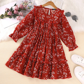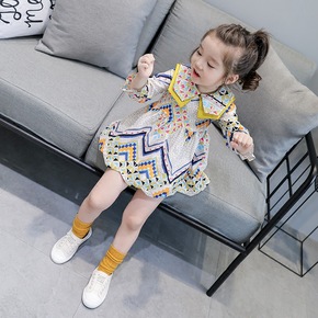 韩版秋装新款外贸童装一件代发女童裙子花色大领公主连...