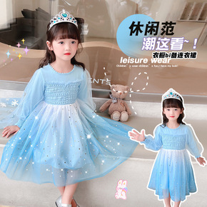 2022秋季洋气新款中小童儿童爱莎公主裙女童秋装可...