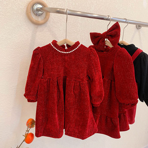 女童冬装连衣裙加绒加厚2021新款儿童新年亮丝公主...