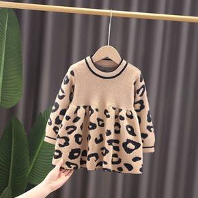 童装2022秋冬季新款毛毛豹纹女童连衣裙可爱时尚潮...