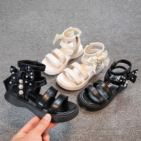 夏季新款女童凉鞋女孩时尚公主鞋韩版低跟罗马鞋露趾学...