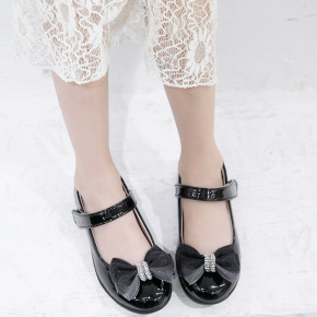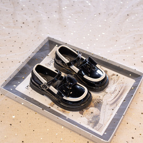 女童皮鞋公主鞋黑色英伦豆豆鞋女孩子儿童表演鞋中大童...