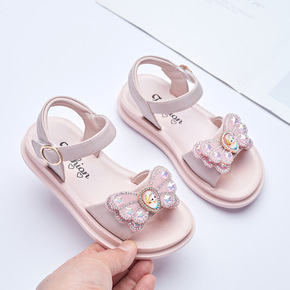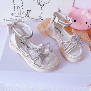 女童凉鞋2022新款夏季女孩平底蝴蝶结儿童公主鞋时...