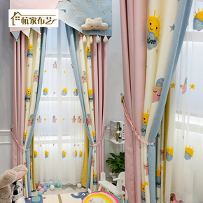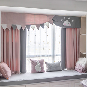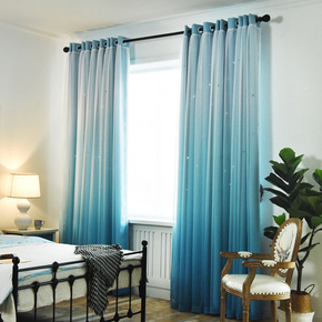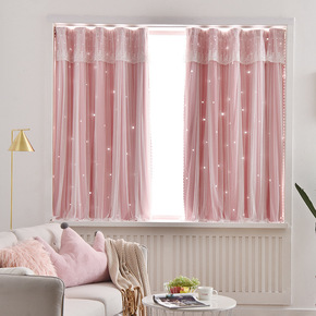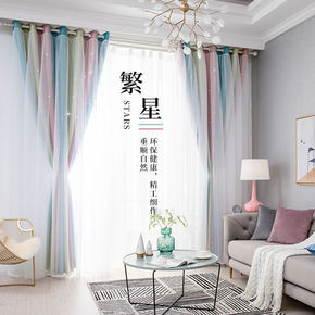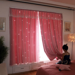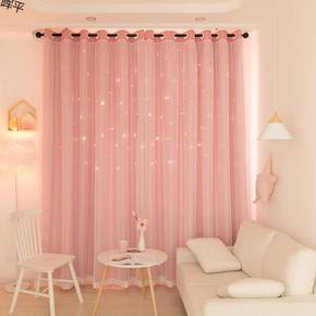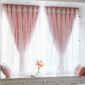风飘窗窗帘布遮光星星公主ins简约网红镂空梦幻窗帘...