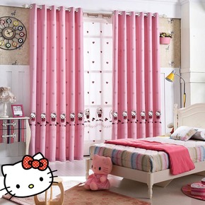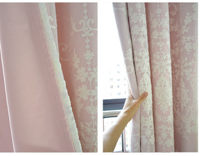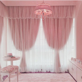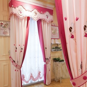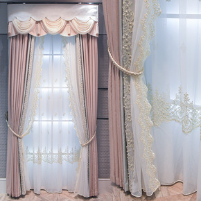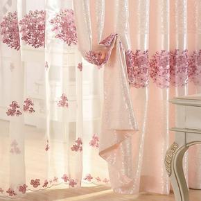 粉色绣花窗帘布料成品公主简约欧式遮光客厅卧室落地飘...