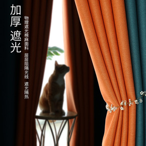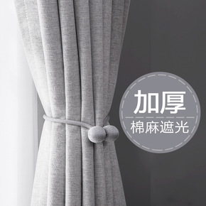 窗帘棉麻薄半遮光纯色简约大气卧室客厅隔断阳台透光成...