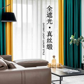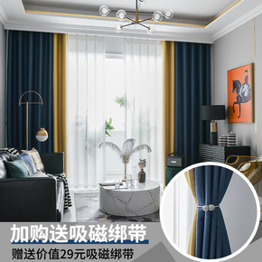 窗帘卧室遮光客厅大气新款简约拼色家用隔热帘成品代发...