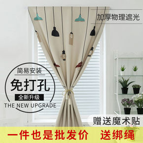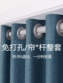 免打孔窗帘全遮光阳布出租房卧室简易帘子门帘送伸缩杆...