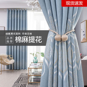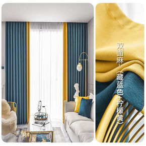 北欧加厚棉麻遮阳遮光隔热窗帘布 简约现代纯色拼色...
