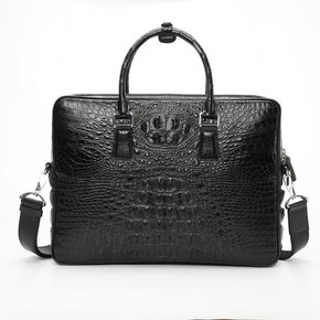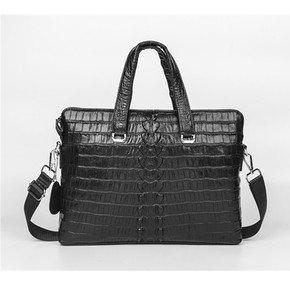 暹罗鳄鱼皮男包圆边公文包真皮商务单肩斜跨公文包男士...