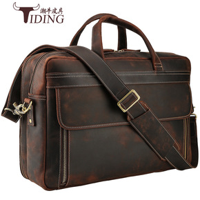 男士真皮公文包欧美复古男士手提包疯马皮双隔层14寸...