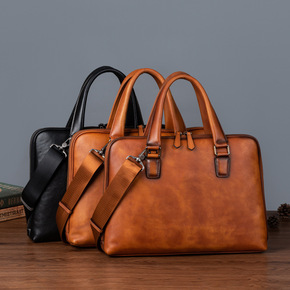 工厂直销商务手提包休闲头层牛皮包单肩斜挎包男士真皮...