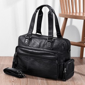 批发软皮牛皮男包手提包商务休闲真皮多功能男士单肩斜...