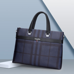 男士手提电脑包公文包格子纹商务休闲男包跨境专供厂家...