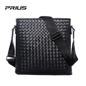 PRIUS商务单肩包 男士牛皮编织包 竖款单肩斜挎...