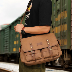 单肩包户外帆布书包时尚斜挎公文男包电脑包大容量邮差...