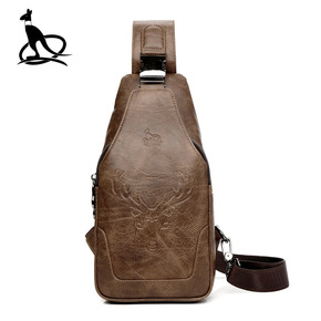 萨奇袋鼠男士pu胸包双拉男潮包 防水单肩包大容量商...