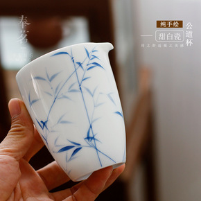 德化陶瓷公道杯鹰嘴均杯手绘白瓷茶具分茶器日式大号茶...