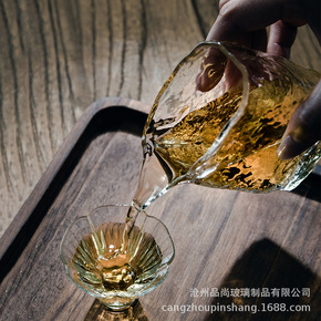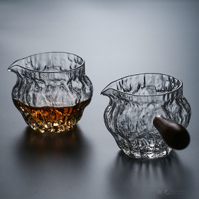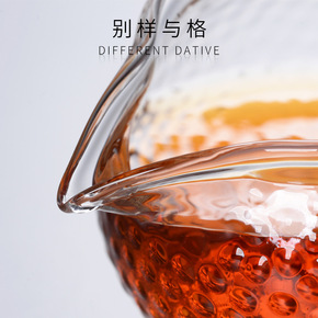 手工扁口冰川纹理公道杯日式耐高温玻璃茶海鹰嘴分茶器...