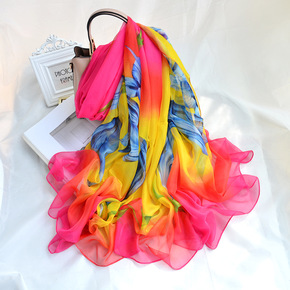 渐变色大纱巾夏季韩版百搭雪纺丝巾海边沙滩围巾两用民...