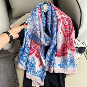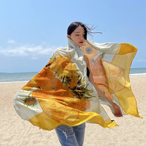 欧美马鞍仿真丝丝巾女沙滩巾海边两用纱巾围巾春夏季遮...