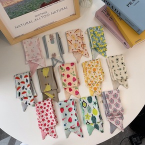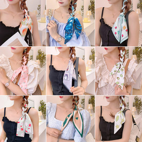 新款水果印花丝巾发带绑发带绑包飘带领巾窄多功能小长...