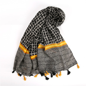 英伦春夏同款格子围巾黑黄撞色纱巾防晒披肩女士时髦流...