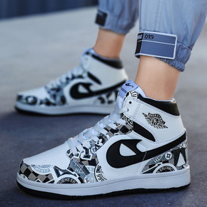 产地货源情侣鞋2020新款AJ7运动鞋涂鸦高帮学生...