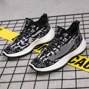 20年男士潮流休闲时尚运动风单鞋迷彩厚底飞织男鞋跑...