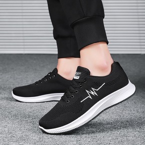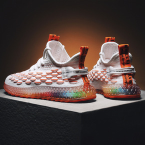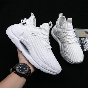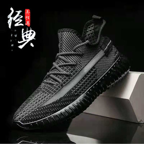 新款男士飞织透气休闲鞋子网红高中学生运动潮鞋时尚软...