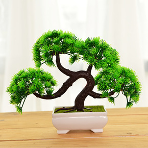 仿真迎客松小盆栽绿色植物盆景松树小盆景家居装饰品桌...