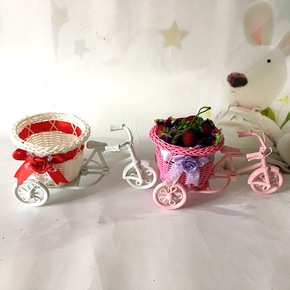 三轮车摆件 手工藤编收纳篮 藤编小花车家居摆设可定...