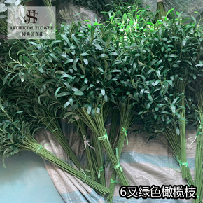 厂家批发仿真橄榄枝 6叉橄榄叶婚庆客厅摆放装饰假花...