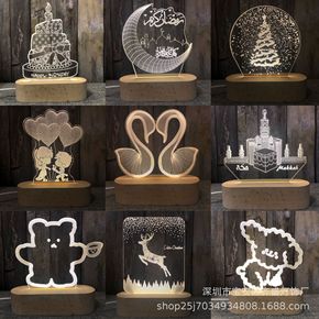 跨境货源3D小夜灯创意礼品灯卧室床头台灯USB遥控...