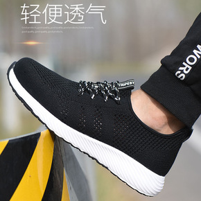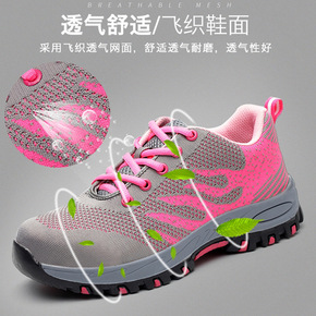 夏季女士劳保鞋轻便透气飞织钢包头防砸防刺女式安全工...