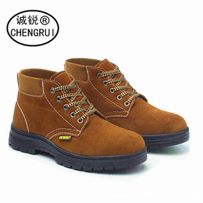 劳保鞋防砸防刺穿 中帮钢包头翻毛牛皮安全鞋 防滑耐...